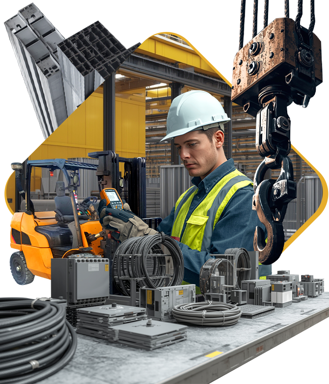 Para levantar, mover y acomodar materiales, así como en el comercio al por mayor de materiales metálicos y equipo eléctrico. Nuestro compromiso es ofrecer productos confiables y servicios eficientes, adaptados a las necesidades de cada cliente y proyecto, asegurando seguridad, productividad y resultados de calidad.